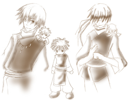 ![]() 名前 ++クウロン・ベルニカ 別名 ++魔眼の暗殺格闘家 性別 ++男 職業 ++一応神父 趣味 ++人の観察、日向ぼっこ 好き ++不明 嫌い ++眼 能力 ++人ならざるモノを見、触れる。格闘術、暗殺術 私物 ++札、暗殺武器一式 性格 ++マイペースでのんき。真意を人に悟らせない 他 ++飄々としながら、裏にいろいろ隠す 過去に眼に纏わる何かがあったらしい キールとはそこそこ長い付き合いで、秘密も知っているらしい 『 この魔に染まる紅い瞳など、欲しくはなかった。何度、これを潰そうとしたか・・・ クスクス・・・逃がしはしませんよぉ〜?貴方の罪はご自分で償って下さいな♪ 』 名前 ++キール 別名 ++暗殺人形、血塗られた魔物 性別 ++一応女 職業 ++なし 趣味 ++戦闘、暗殺、ワカメ取り 好き ++戦闘 嫌い ++愚か者 能力 ++催眠術、格闘術、読唇術、暗殺術 私物 ++札、暗殺武器一式 性格 大雑把で戦闘好き 他 ++呪いを受けて殺人人形となった人間 呪いを受けた原因は話さないがクウは知っているらしい 腕が取れても足が取れても死ぬ事はない 『 かつて犯した過ちが、今もこの身を血塗られた殺人鬼へと導くんだ・・・ 今日も楽しそうな暗殺の仕事だな。血塗られた悪魔の夜がはじまるぜ! 』 |