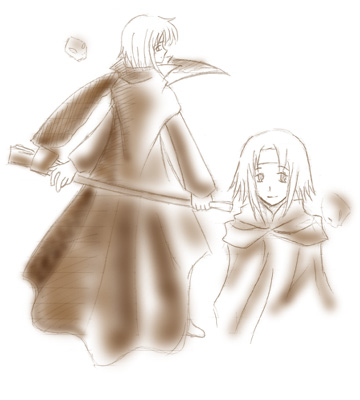 ![]() 名前 ++シアン・ 別名 ++生死を繰る神、死霊使い 性別 ++男 職業 ++教会内調理担当 趣味 ++料理 好き ++料理 嫌い ++死、一部の虫 能力 ++死人の声を聞き、操る、生死の糸を切り、繋げる 私物 ++調理器具、ローブ、鎌 性格 ++人見知り、影薄い、気弱だが、人一倍他人思い 他 ++見た目と持ち得た能力により死神と呼ばれ迫害を受ける 親にも捨てられたが、育ててくれたおじさんがコックで料理を学んだ 魔物に襲われたところをクロス達に助けられ、現在教会の調理係をする 『 死者の声が聞こえるといつも耳を塞いでた。だけど、死者よりも生者の方が怖いね・・・ 今日は温かいシチューですよ。外は寒いですから、温まってほしくって・・・ 』 名前 ++クロ 別名 ++髑髏 性別 ++男? 職業 ++? 趣味 ++しゃべること 好き ++シアン、しゃべること 嫌い ++孤独 能力 ++シアンの能力の媒体 私物 ++髑髏本体・・・? 性格 ++うるさい、さわがしい、賑やか。普段黙ることはほぼない 他 ++シアンが使う死霊を操りこの世へ繋ぎ止める媒体の役割をしている シアンの兄らしいが、現在何かあって身体を失っている 『 おいこら、何しやがる。そもそも、生意気だぞ。ワカメのくせに、大人しくせんか ・・・大丈夫だよ。今はお前の側にいれるだけでわしは幸せだよ。だから泣くなよ、な? 』 |