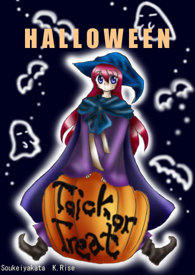ハロゥインフリー絵 ハロウィンとして書いたもの。もともとは落書きだったはずなのだが・・・。 おまけ小説つきでトップに置いていました。 まぁ、誰もお持ち帰りいなかったような気もするけど・・・。 (お持ち帰り期間は終わっているのでお持ち帰り禁止です。) 戻る