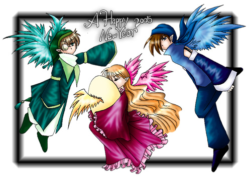 蒼き翼を持つ者は その生命の源を運び 紅き翼を持つ者は その温かき心で包み込み 翠の翼を持つ者は その纏いし風で皆を癒す それぞれが持つ力を持つて 輝く新たな生命を見守る 決して死を迎えることは許されず ただ、同じ事を繰り返す者達 ++++++++++++++++++++++++++; 年賀葉書絵 今年の年賀状に使用した絵 戻る